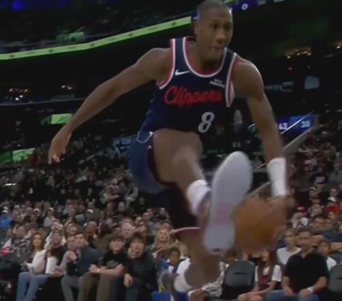 我喜歡這支快船的活力,這跟賽季初老登遍地的暮氣沉沉不同,這在團(tuán)隊(duì)防守和快攻中很有意義。面斷大師鄧恩,扣籃王小瓊斯,他們或逼促著持球人,或旁敲側(cè)擊地搞偷襲,讓進(jìn)攻方一刻不得安寧。他們無(wú)處不在,甚至積極性溢出了屏幕,以至于下面這次底線救球都救出了MJ胯下扣籃的既視感。