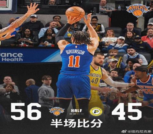 次節比賽,尼克斯進攻火力升級本場首次單節得分30+,步行者連續兩節單節不足25分。尼克斯率先擴大34-26領先優勢,步行者一波9-0攻勢反超,布倫森攻傳結合引領一波11-2攻勢反超8分。步行者連追5分,尼克斯繼續擴大兩位數領先優勢,尼克斯單節32-24凈勝8分,上半場結束尼克斯56-45領先步行者。前兩節比賽,尼克斯三分13中4,布倫森17中9得到23分與阿奴諾比12+4+4;步行者三分17中4,全隊沒有球員得分上雙,祖巴茨9+4。
