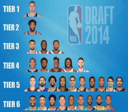 如今回頭再看2014屆新秀,成就最高的不是狀元維金斯,也不是榜眼賈巴里-帕克或者探花恩比德,而是第41順位的約基奇。約老師手握3個(gè)常規(guī)賽MVP,以及一個(gè)總冠軍和一個(gè)FMVP。重排2014屆新秀的話,約老師獨(dú)占第一檔,帕克在第六檔。