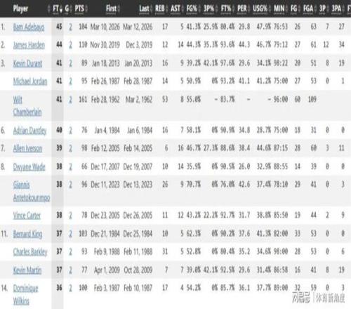 其中有兩項紀錄跟罰球那是“糾纏不清”。其一呢,阿德巴約兩場比賽加起來,罰球次數高達56次,直接把小喬丹從“罰球紀錄寶座”上給拽了下來,自己美滋滋地坐了上去,成了NBA歷史新晉“罰球王”。其二更猛,兩場比賽靠罰球就拿了45分,把哈登都給比下去了,這罰球得分能力,簡直比印鈔機還猛!