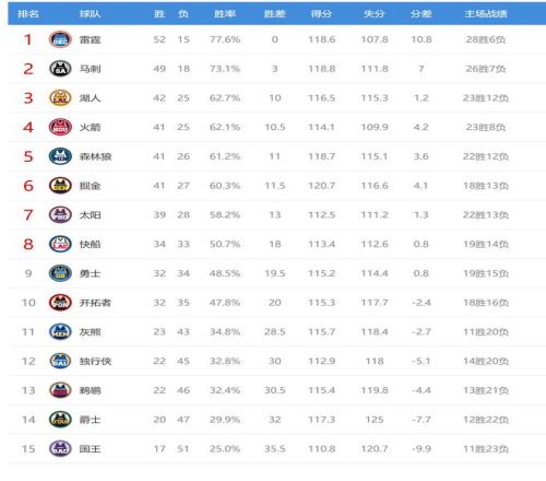 今日比賽后湖人、火箭排名互換,掘金、森林狼排名互換,其他西部球隊排名不變。