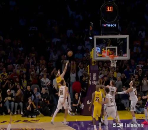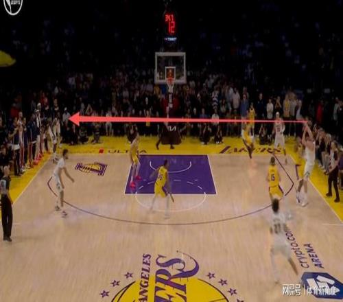 下一個回合,約基奇再次展現出其令人驚嘆的球場視野。湖人隊幾乎將全部防守資源都集中于約基奇身上,將其逼至右側邊線位置。但約基奇一記超遠距離大對角傳球,精準傳至底角的哈達威手中,后者命中三分,掘金隊再次反超比分。
