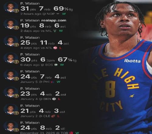 除此之外,佩頓-沃特森也值得大吹特吹,作為22屆首輪第30號秀的他本賽季迎來大爆發,近十場比賽八次單場得分20+,已是掘金可以信賴的穩定進攻火力點。