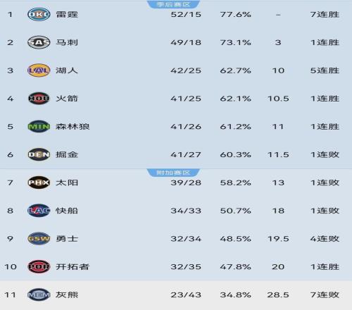 根據規則,常規賽結束后第七和第八球隊將進行一場比賽,勝者以七號種子身份進入季后賽,敗者則需要與第九和第十之間的勝者再進行一場比賽,爭奪最后一個季后賽席位(八號種子)。