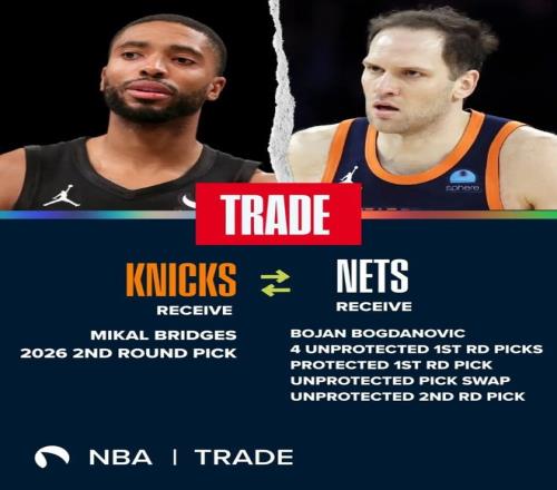 2024年夏天,尼克斯從籃網得到布里奇斯和1個次輪簽,送出去的是博揚、5個首輪簽、1個首輪互換權和1個次輪簽。5個首輪里有4個是自己的,全是無保護,還有一個是雄鹿的2025年前4保護首輪。