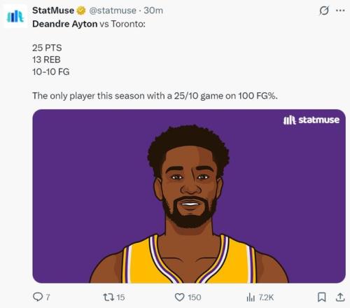 這場比賽后艾頓創造了多項紀錄:1.艾頓成為湖人隊史首位100%+25+10+0失誤的球員;