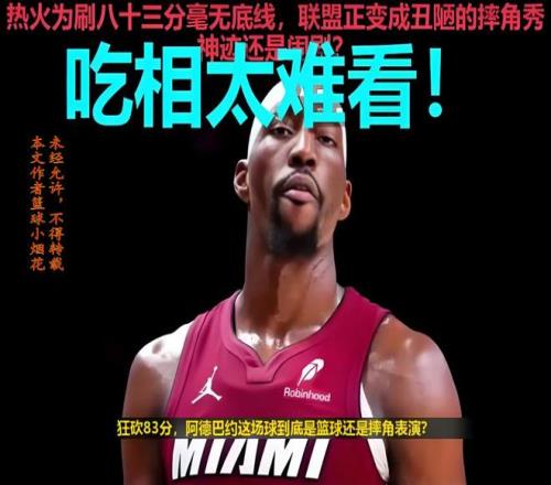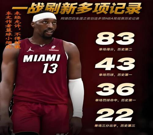 我問你,阿德巴約是歷史級別的得分手嗎?很明顯他不是,他的進攻能力在NBA都排不上前二十,但他靠刷分,拿到了83分,那是不是意味著,任何一名進攻能力比熱巴強的球員,在不考慮球隊打法戰術、隊友心態以及比賽輸贏的前提下,就可以瘋狂出手,只為打破記錄?這樣的記錄,即便是拿到了100分,你認可嗎?