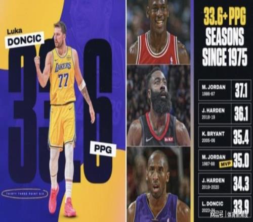 值得一提的是,東契奇在過去的11場比賽中,場均貢獻39.5分、8.1籃板、7.3助攻、2.5搶斷和0.7蓋帽,投籃命中率高達48%,三分命中率也有38.6%。這樣的數據不僅創造了東契奇個人生涯的最高紀錄,也是湖人隊史自2007年科比以來的最高紀錄。而東契奇本賽季的場均得分也達到了33.6分,自1975年以來,這一成績在NBA歷史上排名第七,足以彰顯他的非凡實力。