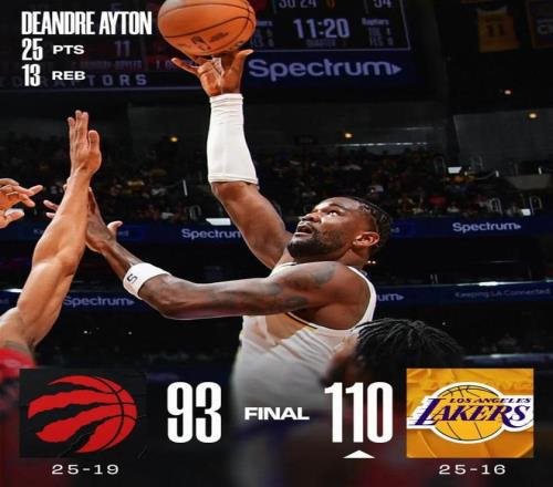 25分是艾頓加盟湖人以來的單場第二高分(此前拿過29分),他也成為了湖人隊史第一個單場以100%命中率拿下25分10籃板0失誤的球員。