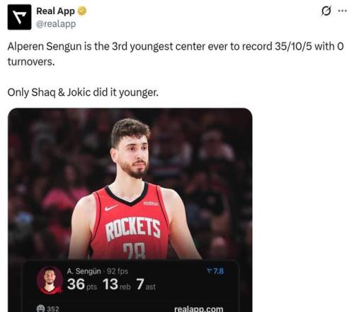 在火箭134-102大勝鵜鶘的比賽中,申京打出賽季最佳一戰(zhàn)刷爆紀(jì)錄,更是成為NBA歷史首人。