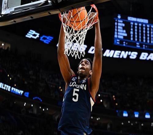 NCAA精英8強(qiáng)賽,全美第7號(hào)種子康涅狄格大學(xué)憑借著先發(fā)大一后場(chǎng)球員布雷倫-穆林斯(Braylon Mullins)的超遠(yuǎn)三分絕...