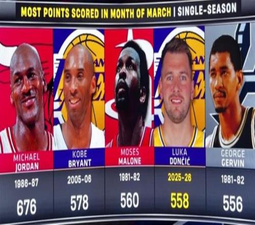 本場比賽結(jié)束后,3月份東契奇總得分定格在600分,成為NBA歷史上第二位在三月份總得分達(dá)到600分大關(guān)的球員,比肩籃球之神喬丹,期間東契奇場均可以交出37.5分8板7.4助2.3斷。