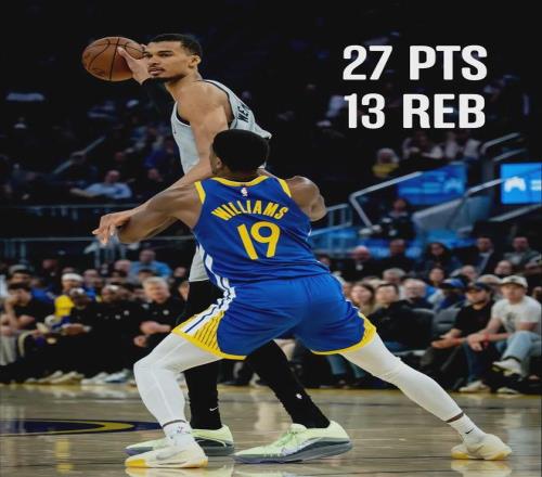 追夢上半場身背4次犯規(guī),第三節(jié)打了4分多鐘,吃到個人第5犯。不過追夢在進(jìn)攻端手感不錯,第三節(jié)投進(jìn)3記三分。馬刺防守有些松懈,勇士第三節(jié)34-26單節(jié)追回8分。三節(jié)打完馬刺96-83領(lǐng)先13分,文班前三節(jié)已經(jīng)砍下34+14+3!