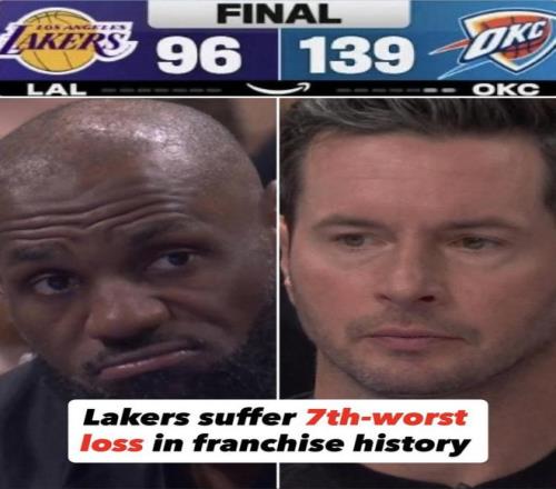 本場慘敗43分,也創造湖人隊史第七大失利分差,本賽季面對雷霆隊時湖人0-3一勝難求。
