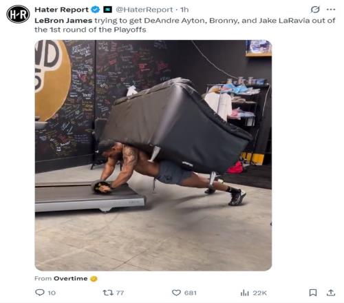 美媒HR:勒布朗將要帶著艾頓、布朗尼、拉拉維亞這些球員一個人打季后賽首輪。(下圖就是詹姆斯在季后賽首輪的現實反應,一個人扛下所有)