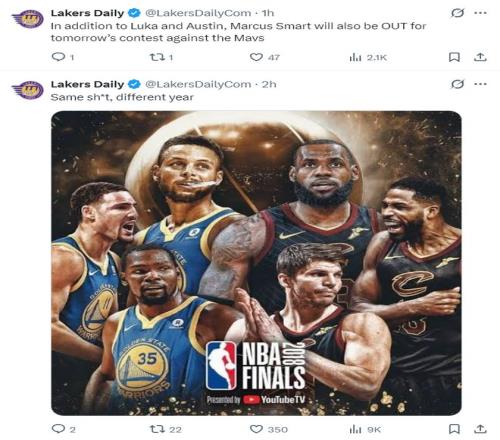 湖媒Lakers Daily又寫道:東契奇、里夫斯、斯瑪特缺席對陣獨行俠,詹姆斯的季后賽似乎又變成了2018年單核對上宇宙勇!