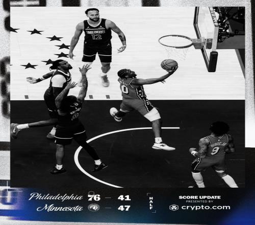 森林狼隊的海蘭德上半場得到14分和4個籃板,愛德華茲得到8分,戈貝爾搶到11個籃板;76人隊的喬治得到15分和7個籃板。