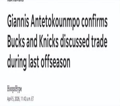 名記Shams曾在2025年10月8日(2025-26賽季開賽兩周前)報道稱,字母哥明確表示,如果雄鹿決定交易他,尼克斯是他唯一愿意被送往的球隊。Shams還提到,尼克斯當時確實就字母哥向雄鹿詢價,雙方在8月就已“展開對話”,但交易始終沒有實質性進展。