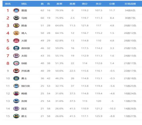今日比賽后掘金、湖人排名互換,獨行俠、鵜鶘、灰熊排名互換,其他西部球隊排名不變。