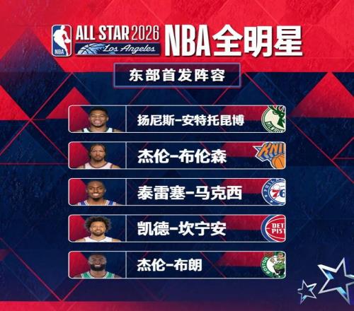 東部:揚尼斯-安特托昆博(雄鹿)、杰倫-布朗(凱爾特人)、杰倫-布倫森(尼克斯)、凱德-坎寧安(活塞)和泰雷塞-馬克西(76人)。