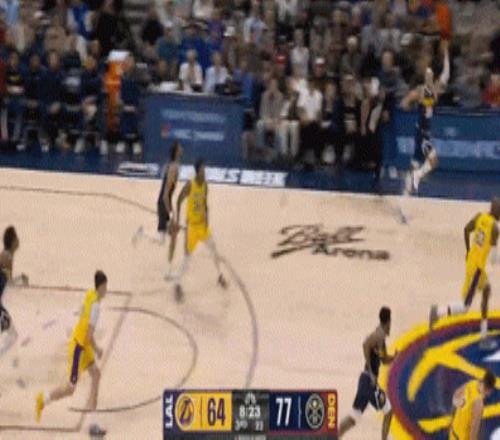 于是掘金一度領(lǐng)先湖人多達(dá)整整16分!