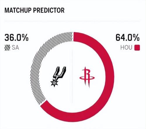 本賽季兩隊首次交鋒,馬刺在主場以11分之差戰(zhàn)勝火箭;但近6次交手,火箭取得了4勝2負(fù)的戰(zhàn)績,占據(jù)一定優(yōu)勢。賽前,美媒ESPN對本場比賽進(jìn)行了勝率預(yù)測,火箭隊勝率依舊高達(dá)64.0%,占據(jù)絕對上風(fēng),馬刺勝率則僅有36.0%,意外不被看好。