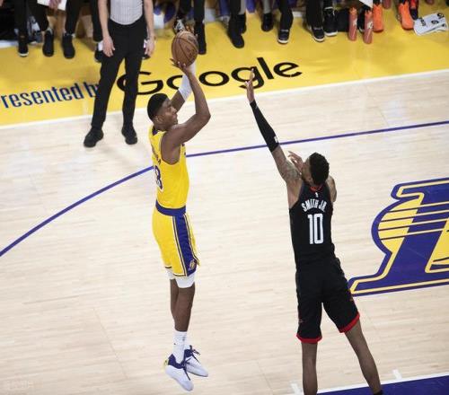 易邊再戰,下半場較量正式拉開帷幕。謝潑德率先發難,一記后撤步三分突施冷箭,為火箭打破僵局;艾頓則在籃下展現強悍籃板能力,連續拼搶拿下進攻籃板后,飛身補籃穩穩得分。另一邊,詹姆斯絲毫沒有給年輕人留情面,背身坐打頂住防守,一記翻身跳投輕松斬獲兩分。隨后小史密斯側翼三分迅速出手命中,八村塁不甘示弱,在45度角命中追身三分予以回應,肯納德則抓住底角空位機會,三分出手同樣命中。拉拉維亞見狀長驅直入,強硬上籃制造犯規,站上罰球線兩罰全中。此后湖人憑借連續沖擊籃下造殺傷,逐漸掌握場上主動權,慢慢將領先優勢擴大到10分左右。三節戰罷,湖人以75-66領先火箭9分,占據晉級先機。