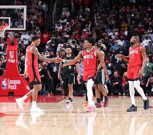 本場比賽中,火箭的先發控衛阿門-湯普森(Amen Thompson)的表現依然是令人喜憂參半。阿門全場出場39分13秒,投籃14中6,三分線外2中0,罰球5中4,得到了16分10籃板6助攻1搶斷2蓋帽的數據,還有3次失誤,正負值為+7。阿門在進攻端雖然依然沒有辦法找到外線投籃方面的手感,但是他在中距離投籃方面的表現倒是有些出人意料的,他在這方面確實是是起到了一定的作用。不僅如此,阿門在防守端的表現也是可圈可點的,給對手的后場新星斯蒂芬-卡斯爾(Stephen Castle)制造了不小的威脅。當然了,作為一名控衛,阿門在傳球和組織方面的表現還是比較一般的,他也需要進一步優化一下自己的進攻選擇以提升自己的進攻效率和成功率。