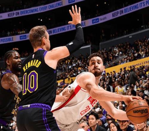 雖然自己得不了分,但湖人鋒線大閘在場(chǎng)上時(shí)火箭也同樣得不了分