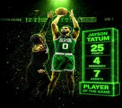 ——塔圖姆,投籃17中9,三分9中5,罰球3中2,得到25分4籃板7助攻