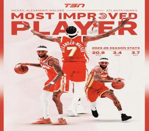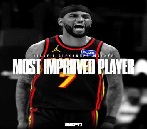 有意思的是,隨著亞歷山大-沃克獲獎,NBA歷史第一次出現(xiàn)進步最快球員連續(xù)兩年被同一支球隊拿走的情況——上賽季,老鷹球員戴森丹尼爾斯當選MIP。