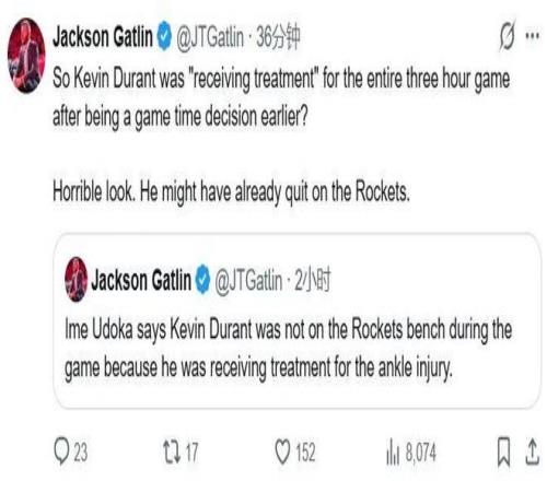 火箭記者Gatlin:“什么治療要3個小時?他可能已經(jīng)放棄了球隊?!?/p>