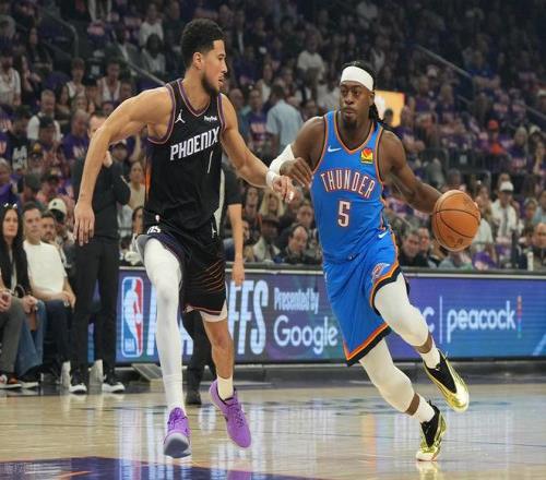 次節再戰,雷霆延續火熱狀態,麥凱恩聯手米切爾持續輸出,穩步擴大領先優勢。太陽全力追分,狄龍與阿倫接連命中三分及時止血,為球隊穩住陣腳。即便太陽奮力反撲,雷霆進攻依舊勢不可擋,麥凱恩手感持續火熱,霍姆格倫送出旱地拔蔥式暴扣點燃賽場。比賽中段,亞歷山大與杰倫·格林開啟巨星單打對飆模式,雙方交替上分、比分膠著拉扯。節末雷霆再度發力,杰林三分命中,卡魯索籃下機敏補籃得分,亞歷山大中投穩穩命中,最后卡魯索一記反擊三分徹底拉開分差。半場結束,雷霆62-53手握9分優勢。