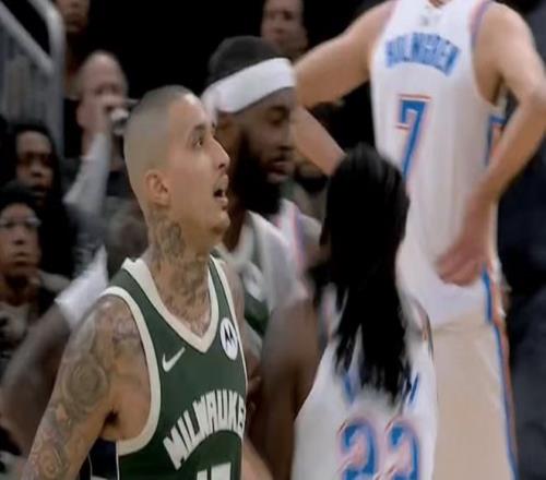 第三節(jié)比賽過程中,波蒂斯肘擊放倒華萊士被吹罰一級(jí)惡意犯規(guī),華萊士進(jìn)行推搡反擊被吹罰技術(shù)犯規(guī)。