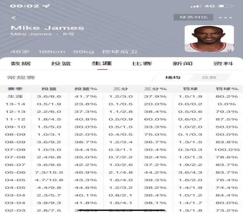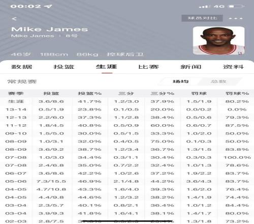05-06賽季麥克詹姆斯場均出手15.5次,跟3年級的波什 一摸一樣的出手,場均20分出頭,命中率46上下。說實話這個賽季的麥克詹姆斯甚至讓人有一種東部前5的得分后衛(wèi)錯覺。