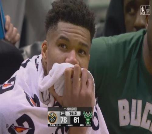 第四節(jié)還剩30多秒,雄鹿落后5分,字母哥準備下快攻時無對抗受傷。他用手捂著小腿,表情痛苦地走下場。字母哥隨即退出比賽,他在板凳席上一言不發(fā),充滿著沮喪和絕望。字母哥的二哥薩納西斯試圖安慰他,依然沒什么效果。