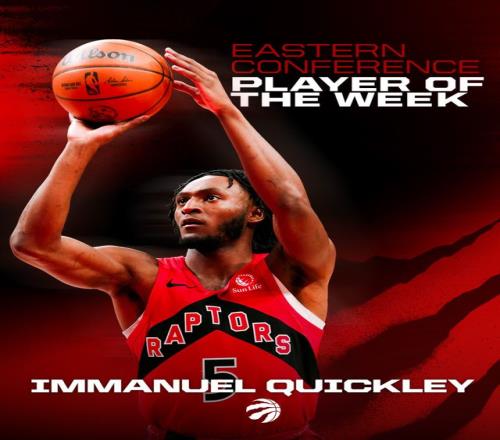過去一周,奎克利幫助猛龍打出4勝0負(fù)的戰(zhàn)績,場均貢獻25.3分6.8籃板,投籃命中率高達61.1%。