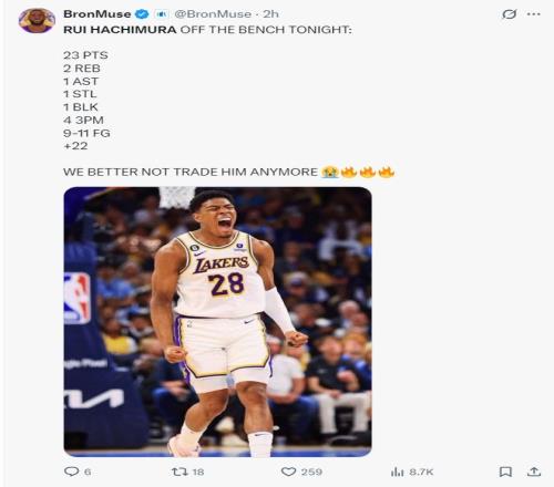 湖人媒體:此役打完后大家覺得八村是否值得球隊長期留用?還是說湖人該在交易截止日前利用他的合同進行交易換取更好的球員?還是繼續留著跟他續約?