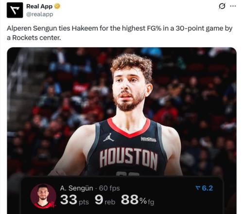 憑借這樣的表現(xiàn),申京成功追平大夢,成為火箭隊(duì)史單場砍下30+得分表現(xiàn)最高效的中鋒,命中率高達(dá)88%。