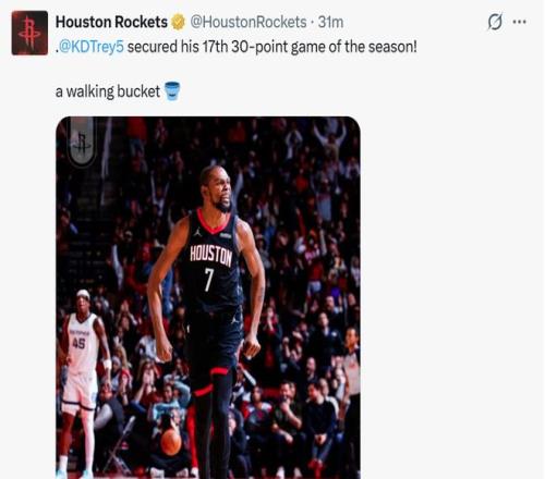 相比于逆轉(zhuǎn)輕取兩連勝,火箭隊(duì)本場一口氣迎來3大喜訊,申京KD雙核合砍66分,三巨頭更是攜手齊破紀(jì)錄。