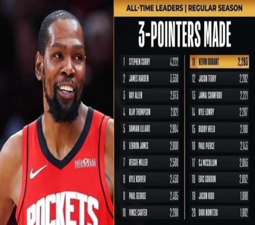 全場杜蘭特24中11,三分9中4,拿下33分8板2助1蓋帽,憑借這樣的表現(xiàn),杜蘭特生涯三分命中總數(shù)提升至2290個(gè),成功追平卡特并列NBA歷史第十。