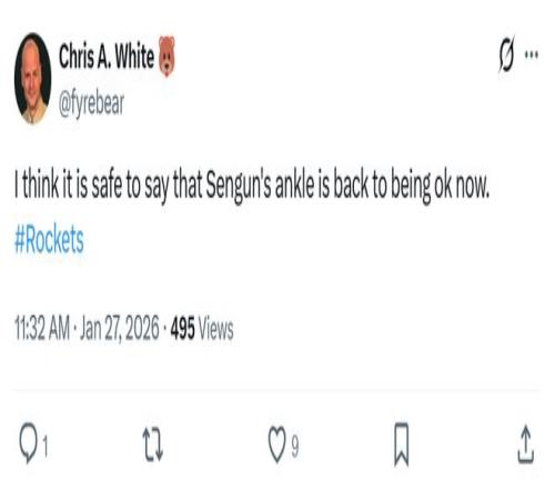 賽后火箭媒體人Chris A. White點(diǎn)出申京狀態(tài)回暖的核心原因:“現(xiàn)在終于可以說申京的腳踝已經(jīng)完全恢復(fù)健康。”