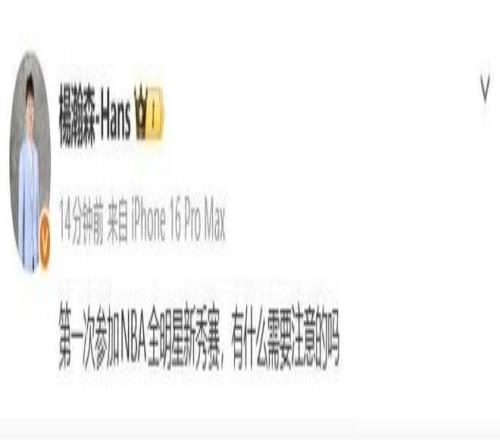 楊瀚森以G聯賽身份入選2026年NBA全明星新秀挑戰賽,隊友分別是肖恩-伊斯特二世(鹽湖城星)、小羅恩-哈珀(緬因凱爾特人)、加西亞(奧斯汀馬刺)、尼德豪澤(圣迭戈快船)、阿利賈·馬丁(猛龍905)和牛頓(毒蛇),主帥為小里弗斯。