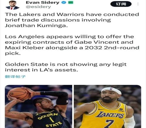 只不過根據(jù)美記Sidery爆料,湖人只愿意提供文森特+克萊伯兩位均處于合同年的球員,以及一個32年次輪簽,對于這樣的籌碼勇士顯然嗤之以鼻,寧愿庫明加徹底砸在自己手里的那種。
