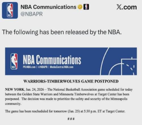 據(jù)報(bào)道,在勇士官方社媒賬號(hào)下,非常多的明尼阿波利斯人留言希望取消比賽,現(xiàn)在NBA終于有了反應(yīng):