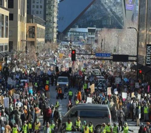 明尼阿波利斯當(dāng)?shù)氐木用裨趺茨軌蛉萑踢@樣的事情反復(fù)發(fā)生?還有沒有王法?自然是炸鍋了,幾萬人上街發(fā)聲,全市交通近乎癱瘓,自然也就沒人有心思去看球。