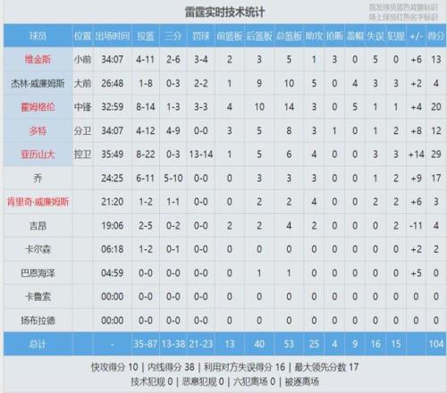 接下來看看球員數據:雷霆當家球星亞歷山大出戰35分鐘,22投8中,三分3中0,罰球14中13,得到29分6籃板4助攻3失誤3犯規,正負值+14全場最高。亞歷山大已經連續118場得到20+,距離張伯倫的歷史紀錄只差8場了。