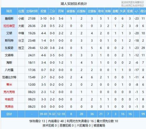 從過程來看!上半場湖人防守不錯,沒有給騎士輕松得分的機會,東契奇傷退無礙有驚無險重新回到比賽,這算是球隊最大的幸運,問題是第三節崩了防守防不住,進攻全靠東契奇一人獨木難支。從數據角度來看球隊大比分輸球是3名球員沒打好!頭號罪人就是詹姆斯:全場8中3得11分3籃板5助攻6失誤正負值-23!第三節連續失誤讓騎士打出氣勢,直接讓對位的亨特打成了全明星發揮太差了,比賽結束第一時間走回球員通道。第二罪人八村塁,替補上來7中0狀態全無,這名球員只要進攻打不成在場上就是副作用。第三罪人斯瑪特,全場4中1僅有2分3籃板,進攻打不開還好說,最關鍵是防守端讓騎士外線打爆了太不應該!