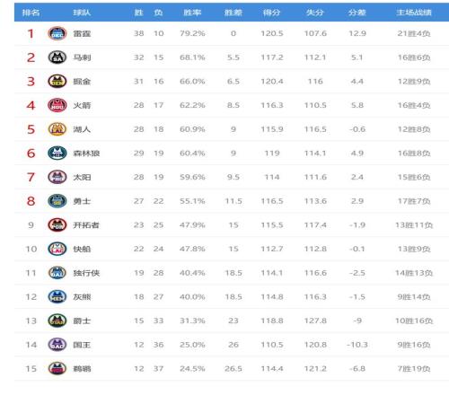 今日比賽后太陽、森林狼排名互換,其他西部球隊排名不變。