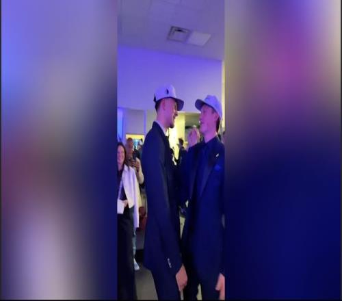 在NBA選秀抽簽當(dāng)晚,弗拉格、克努佩爾并排而坐。